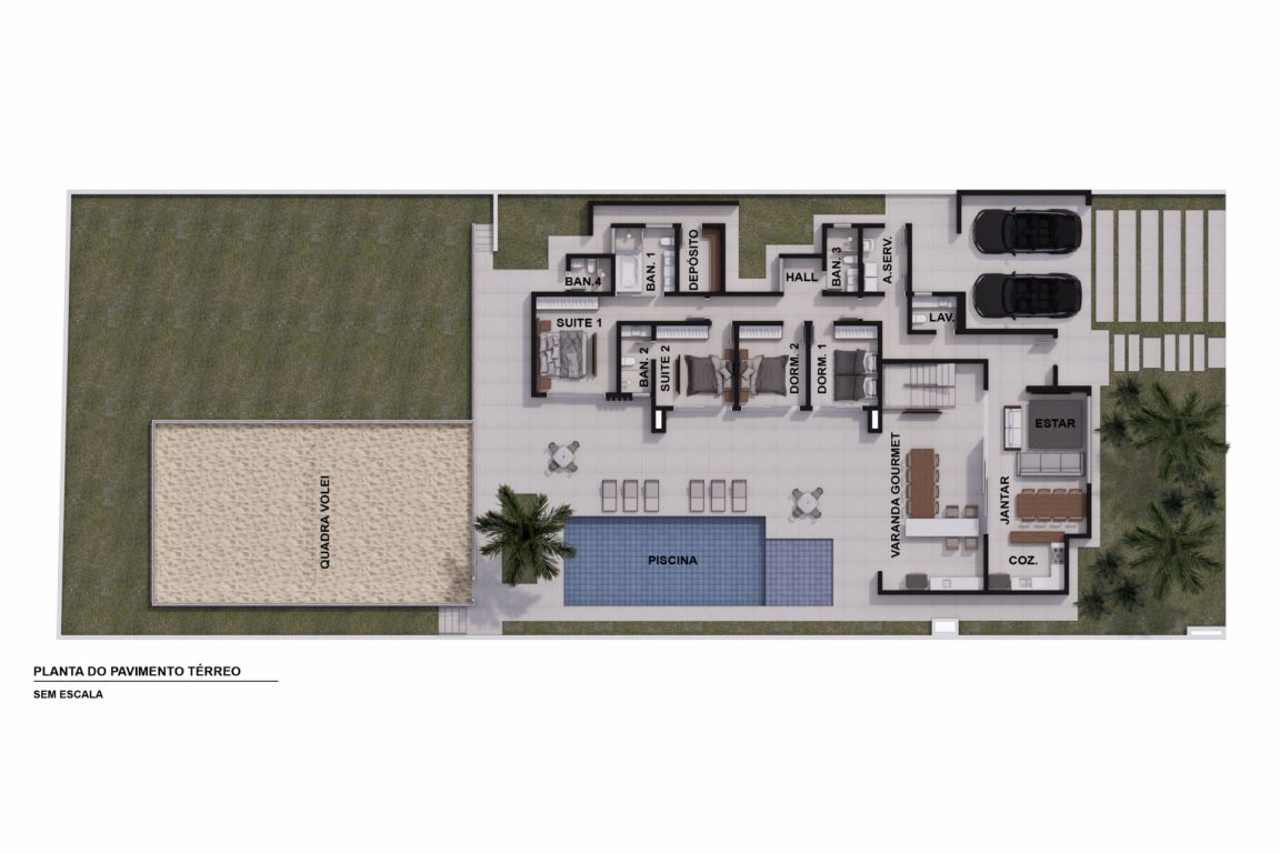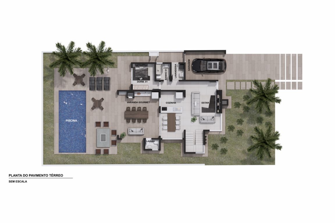 Piso térreo: 140 m²